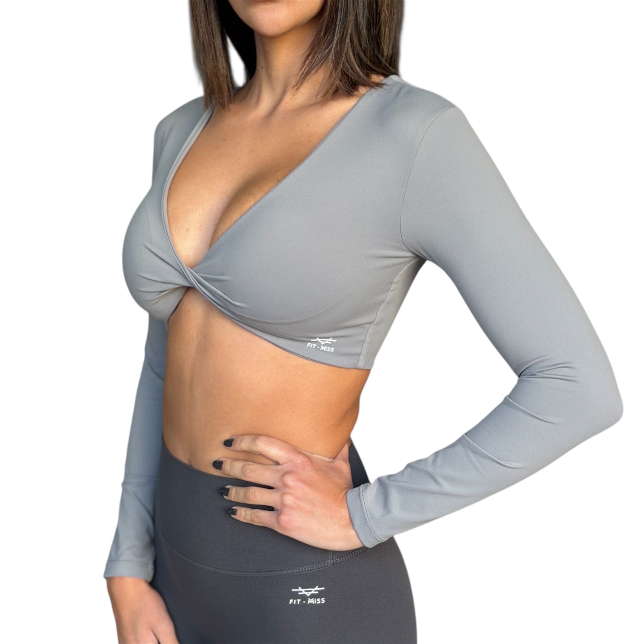 A modern essential, this long sleeve twist front crop top blends fashion and function. Featuring a deep V-neck and removable... Read more