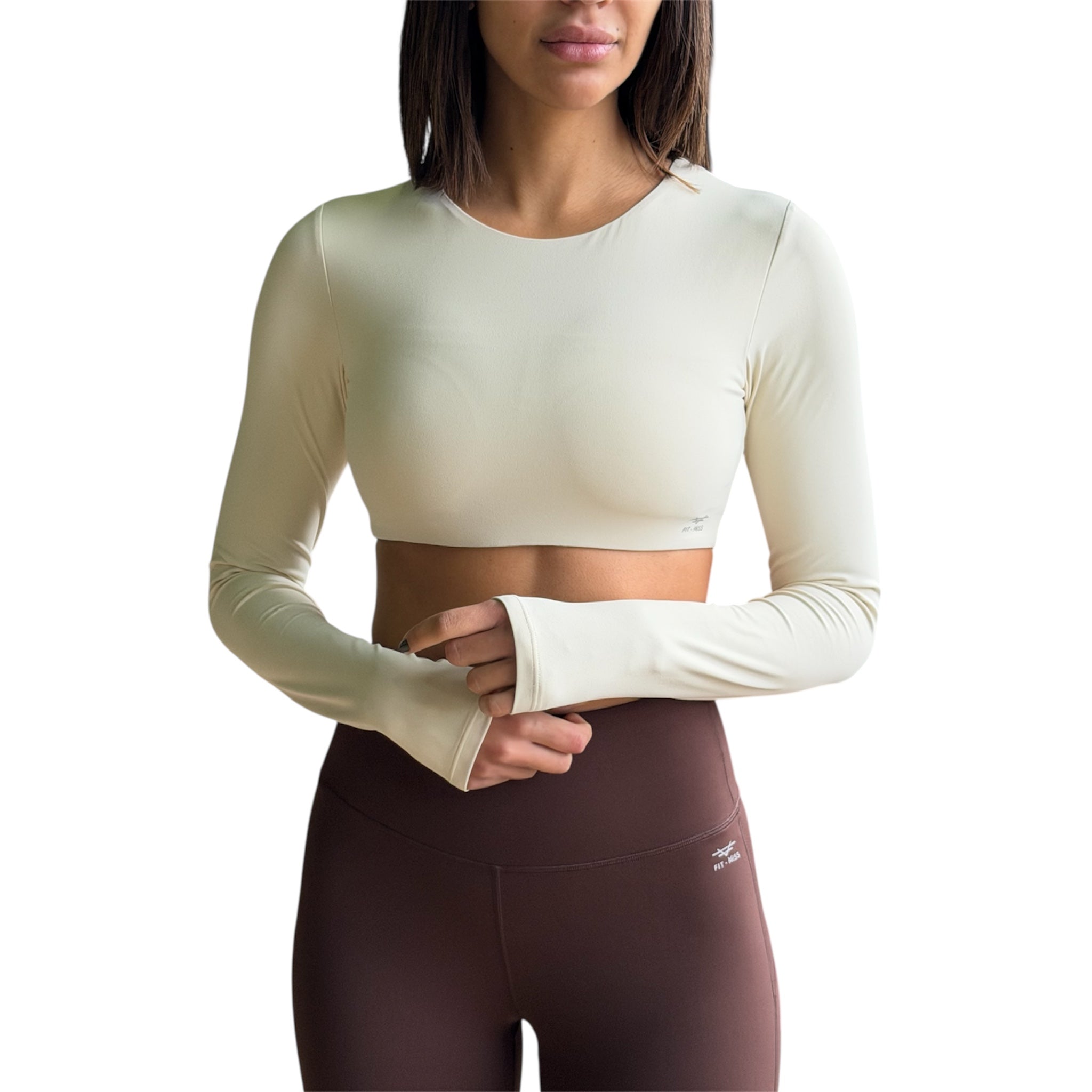 This minimal long sleeve crop top is designed for a sleek, sculpted fit with all-day comfort. Featuring a built-in bra with removable padded cups, it offers customizable support and coverage. Made from a smooth, stretchy performance fabric, this women’s workout crop top moves effortlessly with your body while maintaining a clean, minimalist look. Perfect for gym workouts, yoga, Pilates, and everyday athleisure, it pairs seamlessly with our Minimal Seamless Front high-waisted leggings.